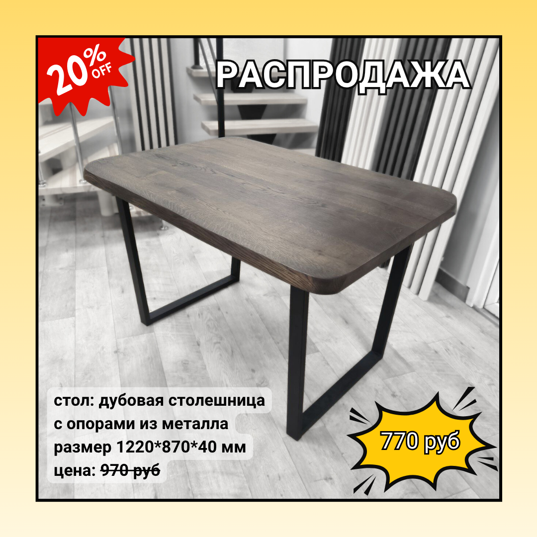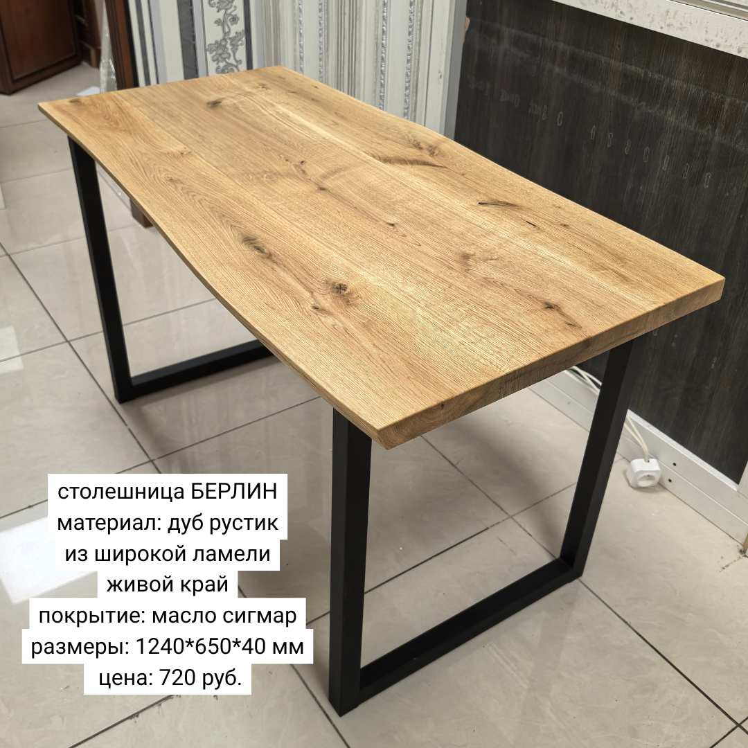 | 4 | дуб | стол с живым краем на опорах | 1220 | 870 | 720 | 700 - столешка | 270 - опоры | 970 770 |