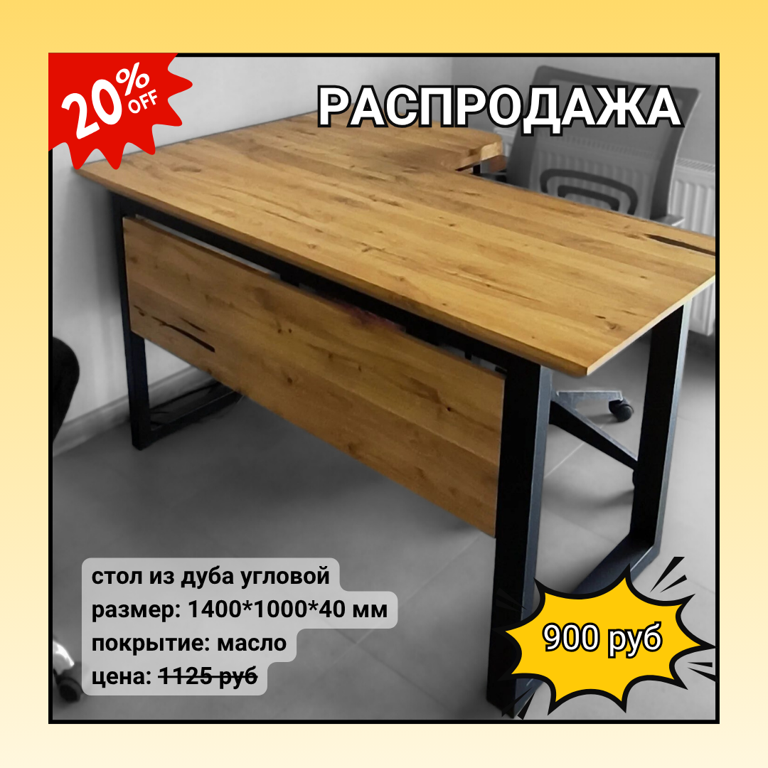 | 1 | дуб | буквой г (письменный) | 1400 | 1000 | 750 | 625 - столешка | 500 - опоры | 1125 900 |