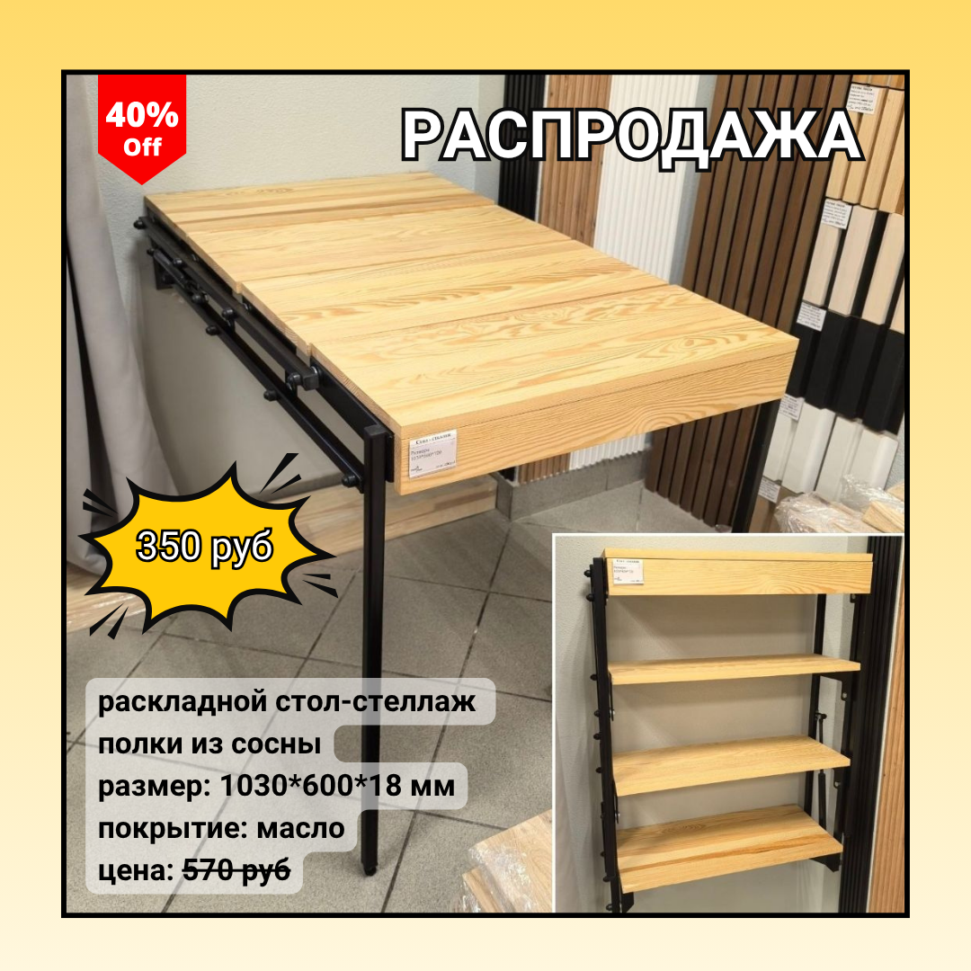 | 3 | сосна | полка-стол из сосны | 1030 | 600 | 720 | 120-250 (от породы) | 450 (механизм) | 570 350 |