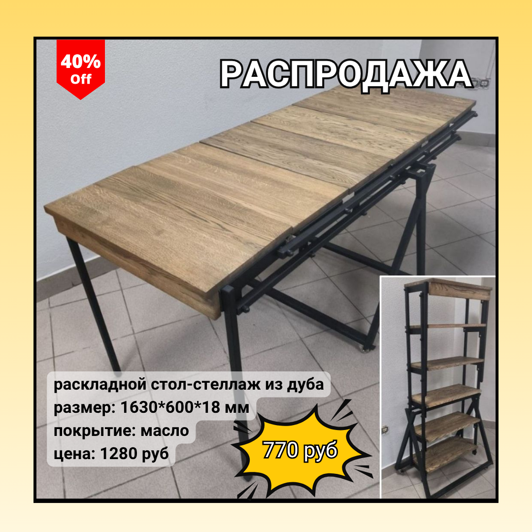 | 2 | дуб | стеллаж-трансформер из дуба | 1630 | 600 | 720 | 190-380 (от породы) | 900 (механизм) | 1280 770 |